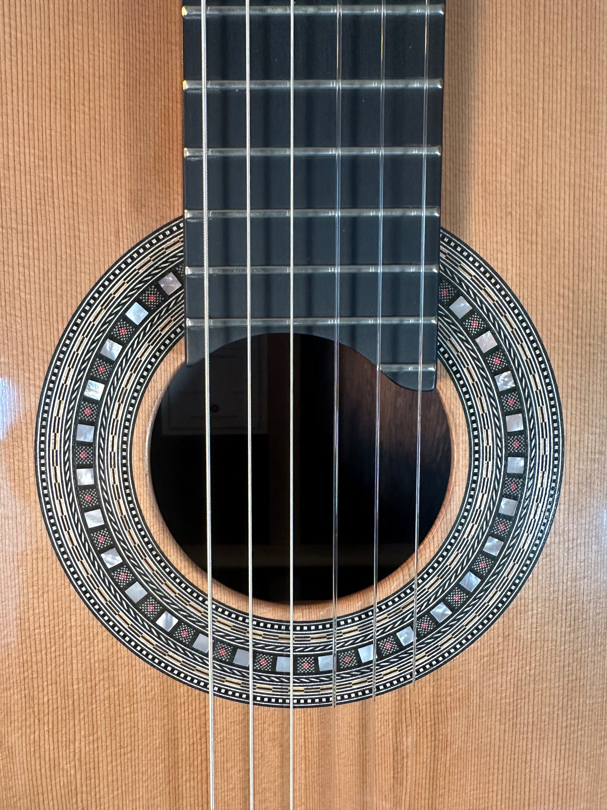 C9 Concerto is a double top guitar with raised fingerboard, fully French polished classical guitar. Cedar and Madagascar Rosewood.